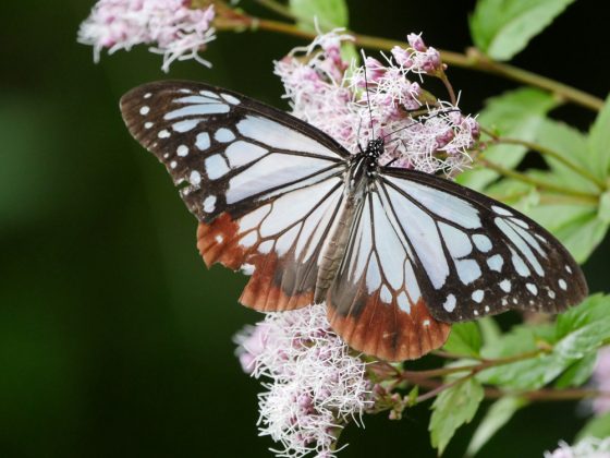 フジバカマという花の蜜を求めて渡りをする蝶がいるっていうのを何年か前に知って、親方がその蝶を呼ぼうとフジバカマを10数株も植えたのは3年前。「そんな簡単に来るわけないじゃろ。」と内心思っていたのですが、今年、ひらひらと2頭のアサギマダラが舞っているのを見つけました!