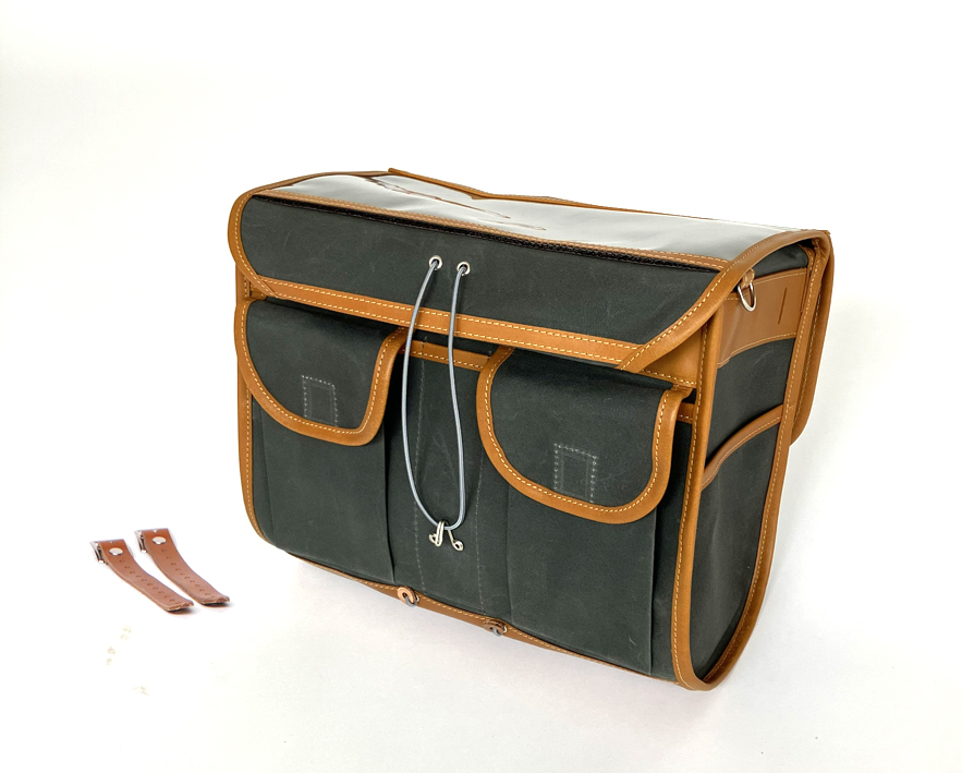 普通サイズのアンベールは2年前にカーキ色にモデルチェンジしていましたが、大きいサイズのアンベールグランデも今回の生産でようやくランニングチェンジできました。落ち着いた色合いで、ベルトゥの他のバッグともコーディネートしやすいです。国内で1点1点手作りしていただいてます。