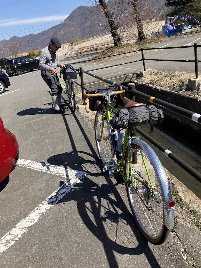 尾坂君はその昔、アイズバイシクルで一緒に仕事をしてくれていた仲間でもありましたが、そのあと東叡社で更に経験を積んで、神奈川県は厚木で自分のお店を構えています。フレームだけでなく、バッグも企画製作するオリジナリティ溢れるビルダーさんです。風虎(ふうと)くんは彼のお客様。2日後に中学校の卒業式を控えた16歳です。5年前の小学生の時に日本縦断を走り遂げたサイクルツーリング大好き少年です。