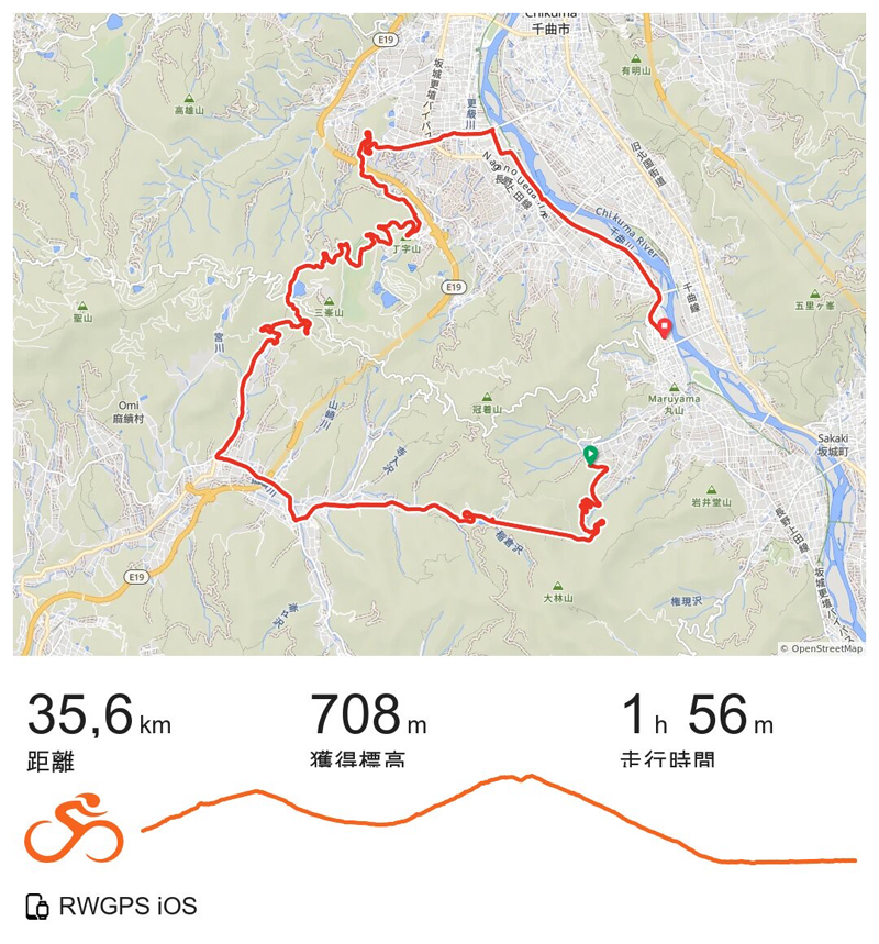 今回、走ったコースは今年のJBTの走行会のルートです。ただ、すべてのコースはとてもハードなので私はショートカットして四十八曲峠と聖高原を巡る40キロのコースです。下の画像はその時のログですが、記録をスタートするのが遅れてしまって最初の5キロほどが記録に載っていません。