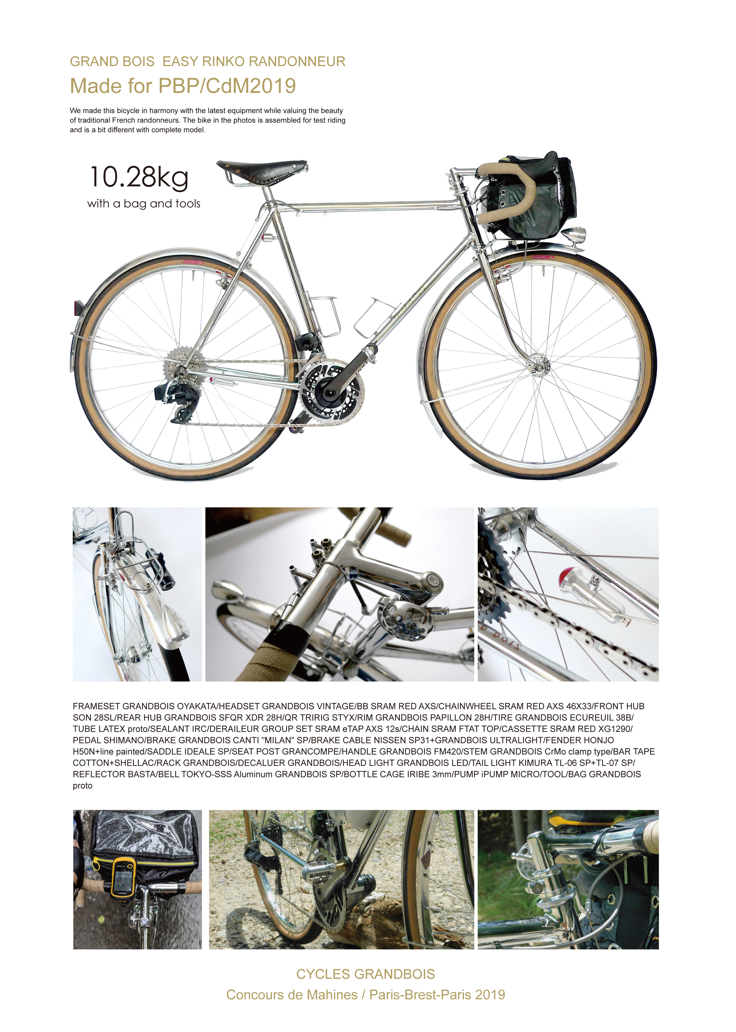 親方とどれにしようかな、と少し考えましたが、やはり2019年のパリブレストパリを走破し、コンクールでも3位に入賞した自転車は、親方がランドナーの「伝統」と「これから」を同時に詰め込んだ渾身の一台ですし、ストーリー性もあって多くの方に見ていただくのにも最適です。明後日から2ヶ月ほど展示していただけるようです。