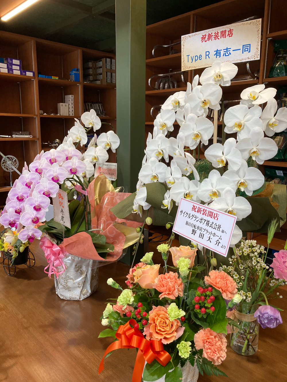 最後になりましたが、リニューアルのお祝いに駆けつけてくださった方、お花や差し入れを贈ってくださった方、早速お店を覗きに来てくださった方、本当にありがとうございました。この時代、なかなか「ご来店ください」とは言いにくいのですが、新しくなったアイズバイシクルにいつか足を運んでくださいますように。