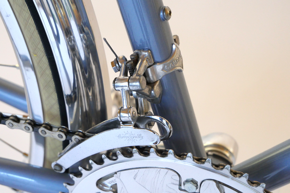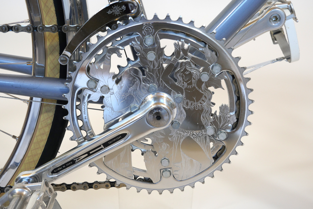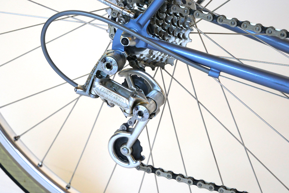 チェーンリングを自作するほどのベテランのお客様からのオーダーです。お気に入りのヴィンテージパーツを使いつつ走りには軽さを求めたツボを押さえた仕様になっています。