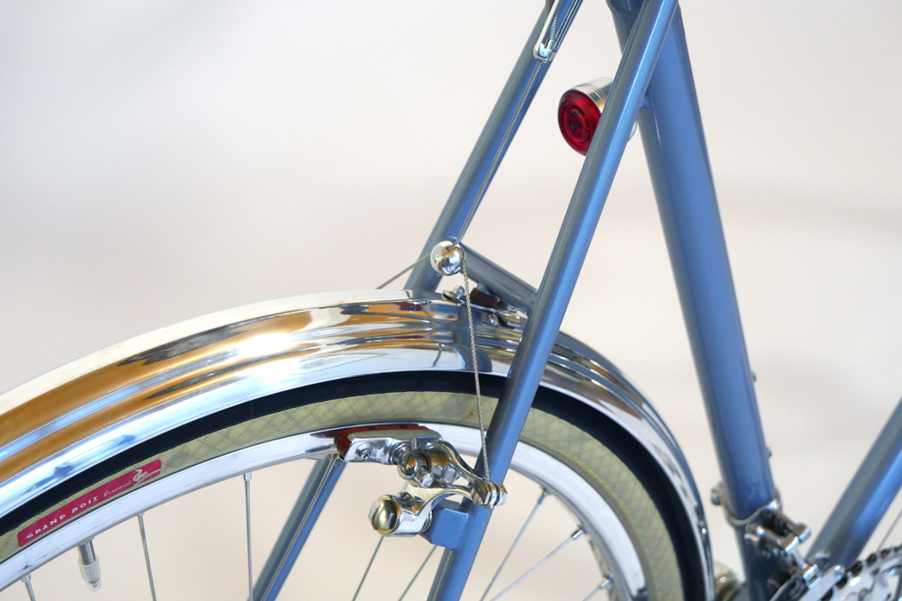 Frame GrandBois ER650 540mm/Headset GrandBois RINKO/Chainwheel TA Triple + Original outer ring 160mm 50-44-30T/Hub GrandBois LFQR/Rim GrandBois Papillon/Tire GrandBois Ecureuil 650x38B/Front Derailleur + Shift lever Campagnolo Record/Rear Derailleur Campagnolo Rally/Cassette SHIMANO CH-HG50-8/Chain Cede Sports/Brake GrandBois NC MiLAN/Brake Levers Dia-Compe GC160/Fender HONJO H47N/Saddle IDEALE #88/Seat post Gran-Compe/ Handlebar GrandBois PM410/Stem GrandBois CrMo 60mm/Front Rack Nitto M21/Tail Light GrandBois LUNE/Reflector KIMURA 38mm